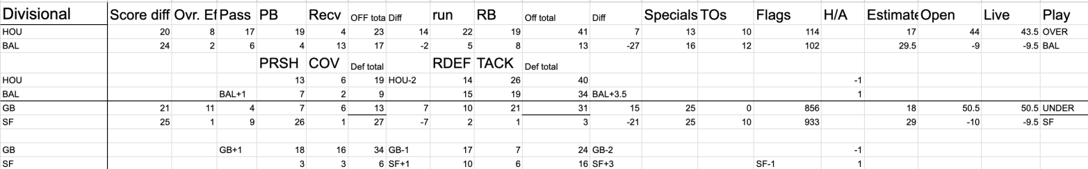 We’ve looked in the mirror, we’ve taken accountability, and we had a stern talk with the PFF football numbers. They made us look like a fool last week, and it can’t happen again. Unfortunately the numbers show chalk and like the over in 3 out of the 4 matchups. Did some Joe Public create theseContinue reading “Divisional Round Preview: 1/20”