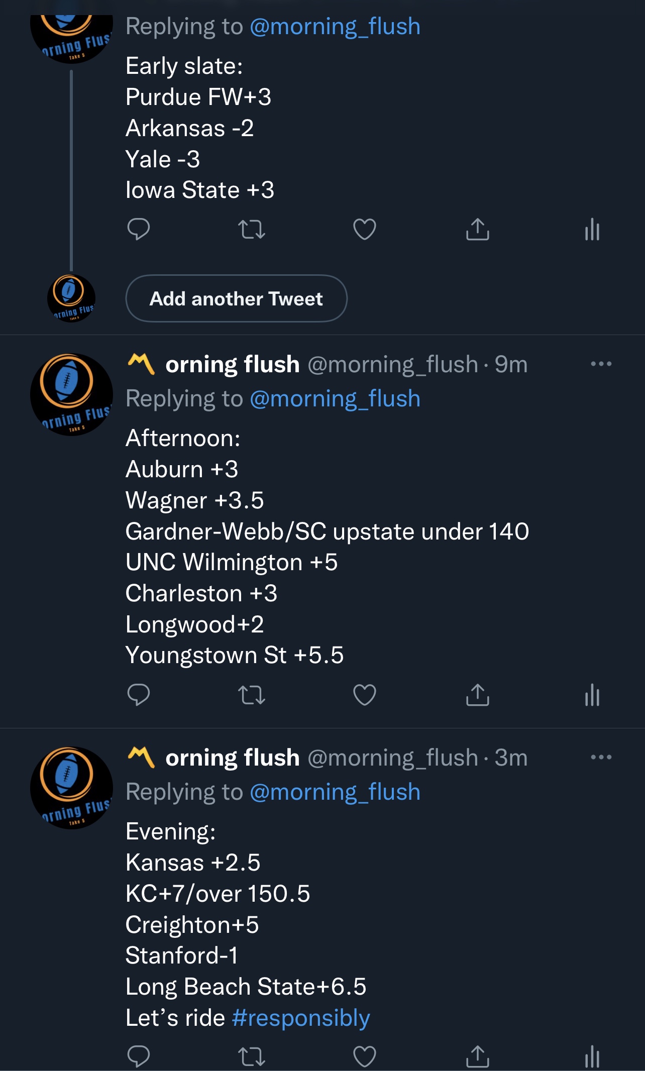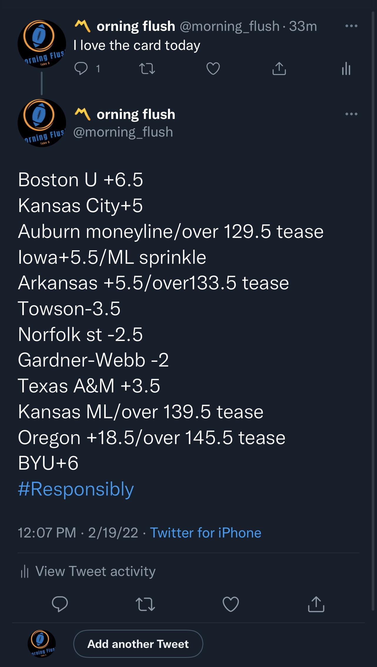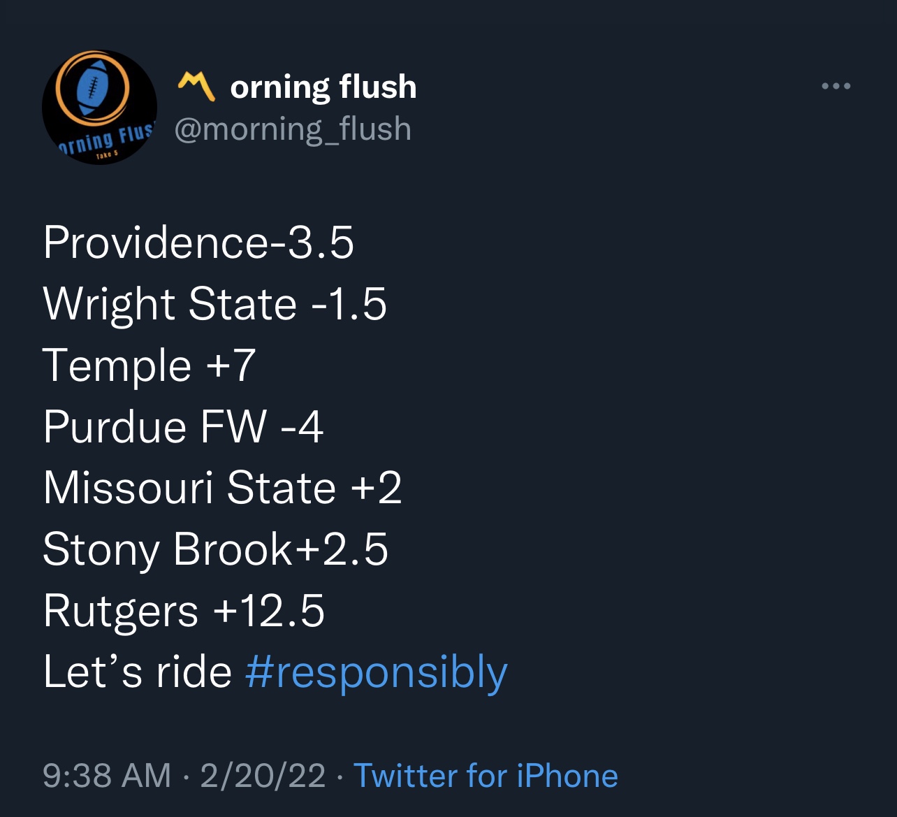 I absolutely love the card today and there are marquee matchups in just about every conference. Too many great games to highlight just one, so set up your mancave and enjoy they beautiful day of basketball. Don’t forget to follow @morning_flush on Twitter for some more sprinkles. Love you, bye.