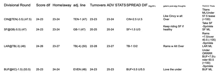 We’ve looked in the mirror, we’ve taken accountability, and we had a stern talk with the PFF football numbers. They made us look like a fool last week, and it can’t happen again. Unfortunately the numbers show chalk and like the over in 3 out of the 4 matchups. Did some Joe Public create theseContinue reading “Divisional Round Preview: 1/20”